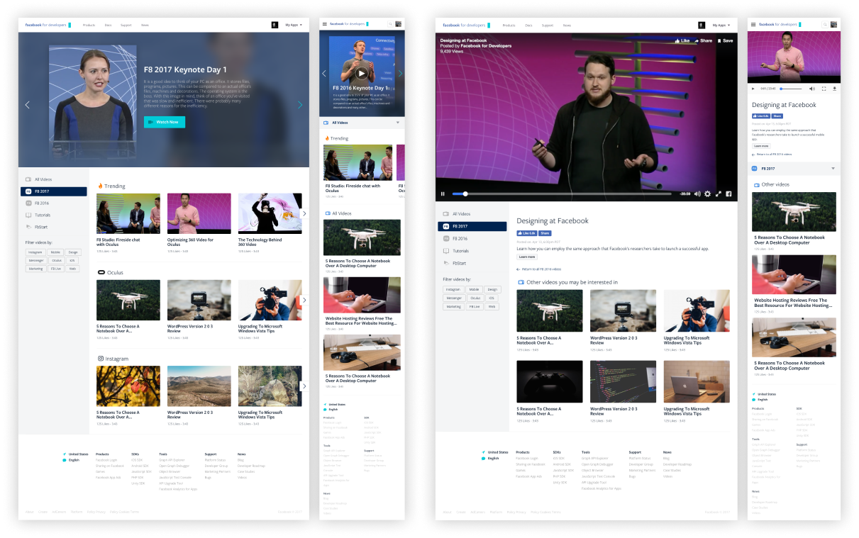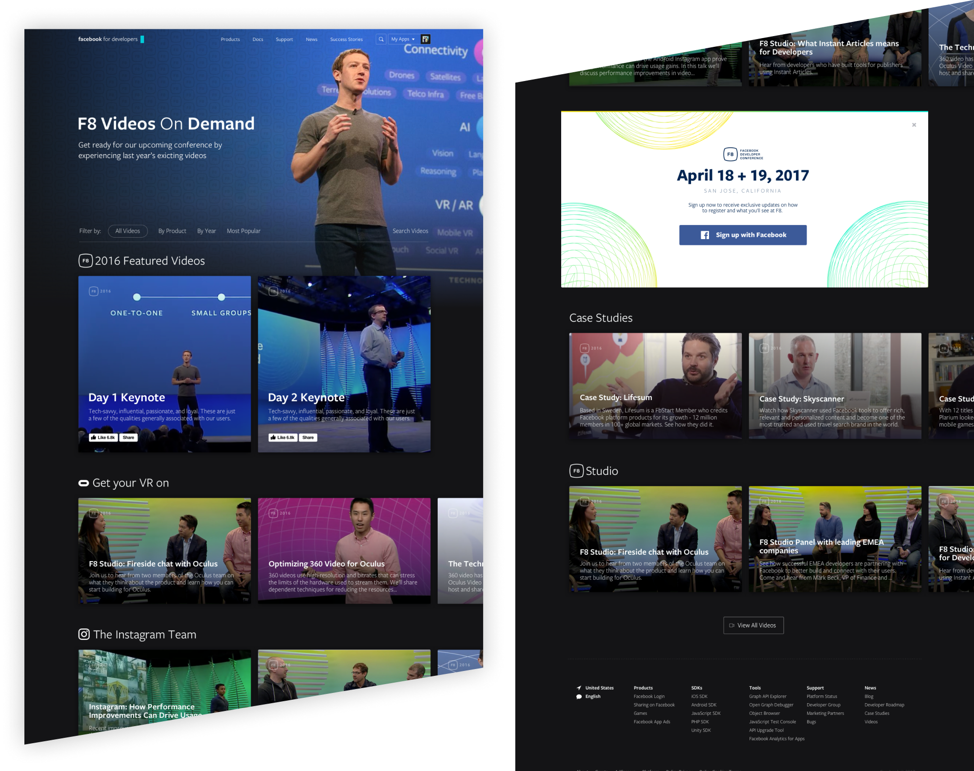The developer team was tasked with redesigning the Facebook F8 Conference website. It was fantastic working with all the long-form video media on file.