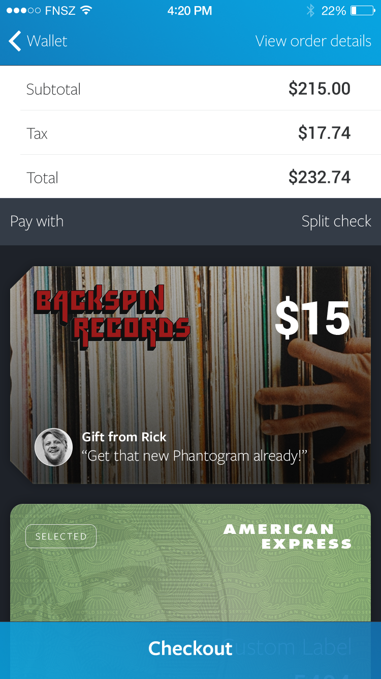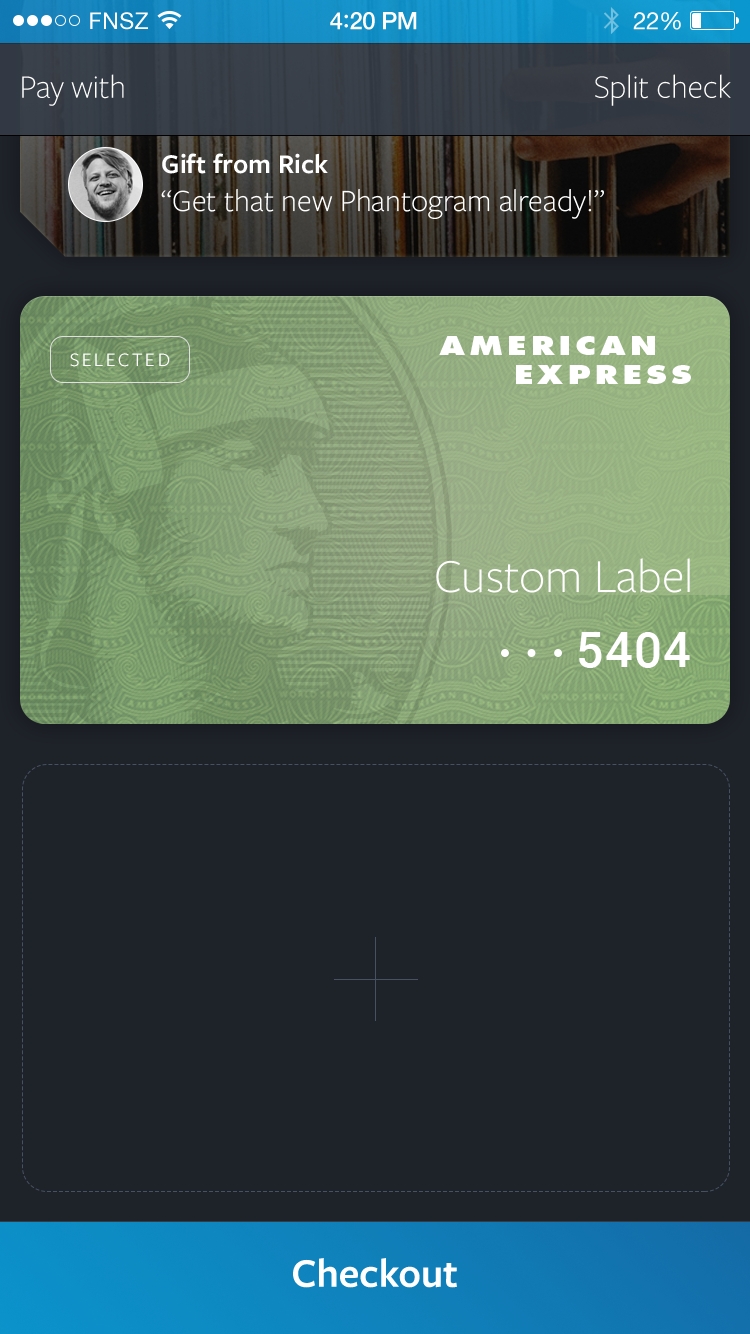 Location-aware check-in allowed users to pay at participating merchants without pulling out their phone at the register.