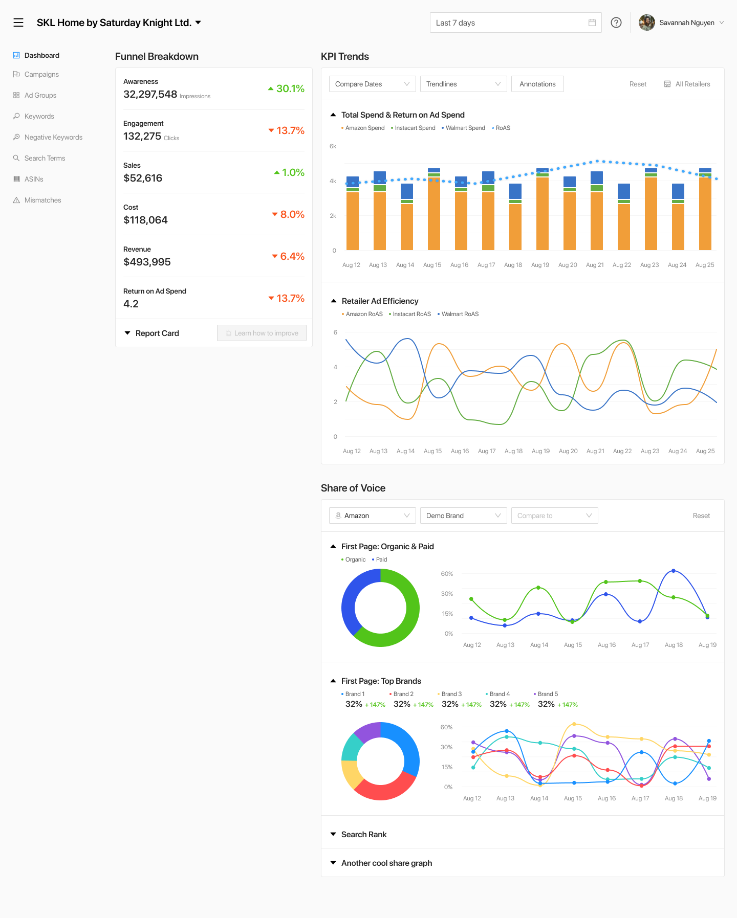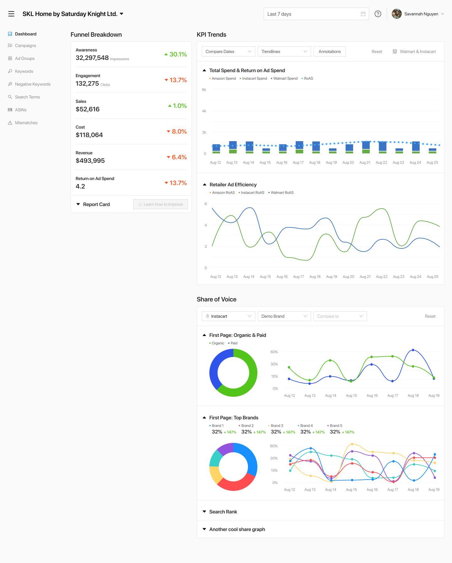 Search Nurture is a digital marketing campaign manager that provides insights for sales in Amazon, Walmart, and Instacart. Their tools were all developer made and needed foundational restructuring. There is absolutely no branding in the tools and we pursued pure user flows as a bedrock for later branding iterations.